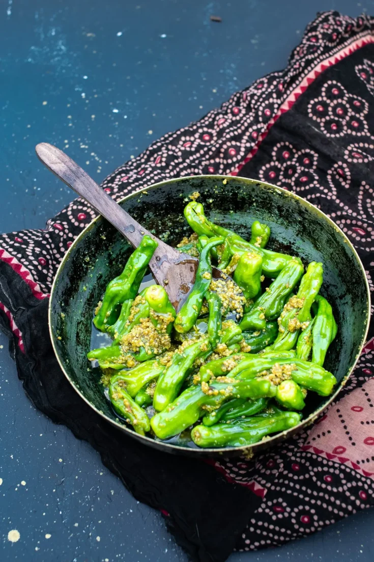 Marcha nu Athanu is a hot green chili pickle with a huge flavor punch that comes from the colorful state of Gujarat. This traditional recipe creates a spicy sauce that perks up any meal by blending a variety of aromatic spices and ingredients with fresh
