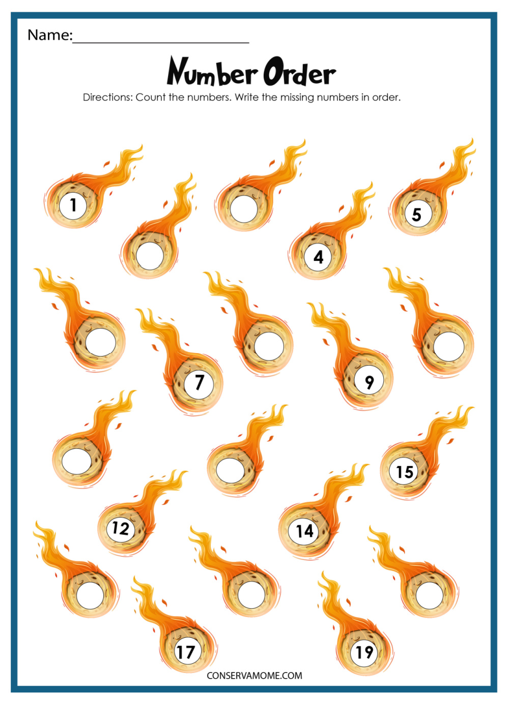 Number Order with Comets – Children can reinforce number recognition and sequencing by arranging fiery comets in the correct order.