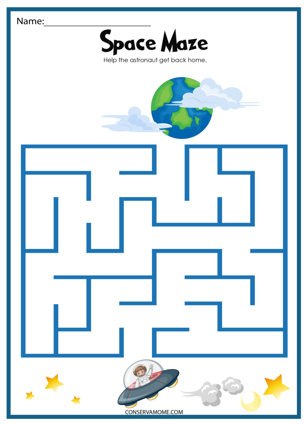 Space Maze – A fun way to work on problem-solving and fine motor control as kids guide a spaceship through space to reach Earth.