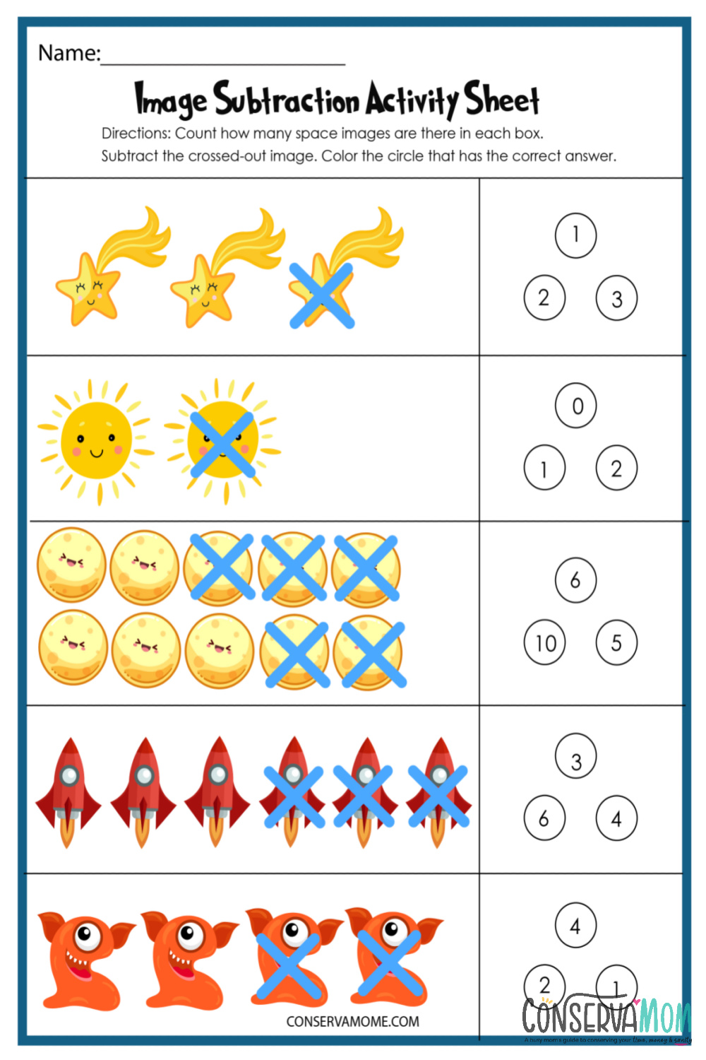Subtraction Activity Sheet – Early subtraction practice gets a space-themed twist, turning learning into an intergalactic adventure.