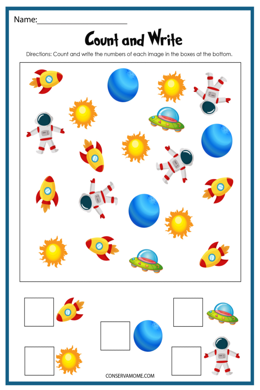 Count and Write Activity Sheet – Kids will enjoy counting and adding cute rocket ships, helping them practice early math skills in a visual, engaging format.