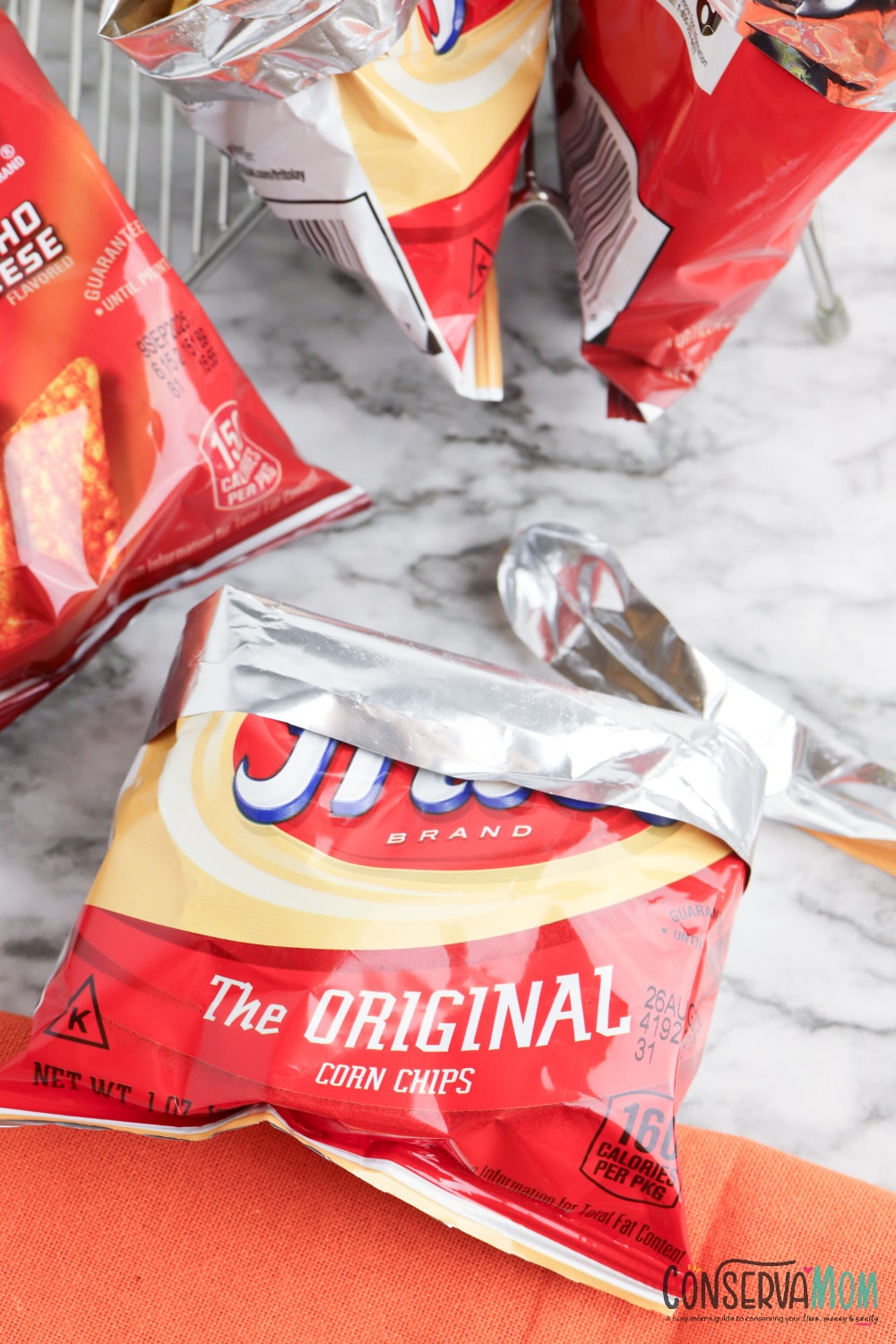 Use scissors to cut open each chip bag along the top and fold down the edges.