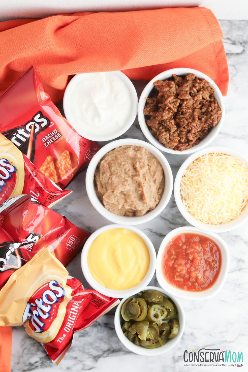 10 individual bags of Doritos and/or Fritos (You can also use any other variety of chips in a bag)